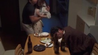 Old monstrous man fucks a teen woman while her boyfriend is sleeping drunk