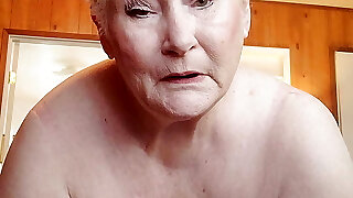 Nasty Granny Showing Off Her Large Labia As She Rubs It With A Dildo