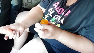 Big Jug MILF Teacher practices her handjob skills on a dildo
