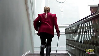 Two butlers start an anal threesome with their blondie milf boss in which they Double Penetration and creampie her