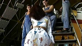 Enormous Tits HARD DPP Wearing Stockings In The Barn