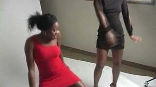 Horny black damsel strap on dildo fucks juicy ass of big tittied Arabelle Raphael in the ring