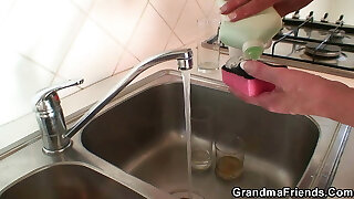 Housewife and mommy lets herself be fucked extremely horny and her cunt stretched