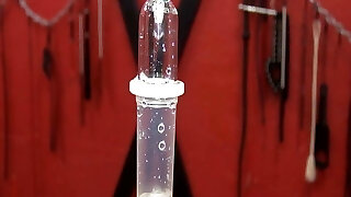 Female Dominance Mistress milking cock with gloves