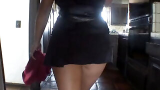 Mature MILF shaking yam-sized butt in panties and big boobs, masturbates with fuck stick. PAWG. Fetish.