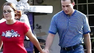 Barely College-aged slut in specs blows pop's big firm man sausage then gets cum in pink pussy