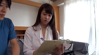 Akiho Yoshizawa nurse sucks dong and massages it with bumpers for