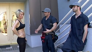 Killer blonde woman enjoys during MMF threesome - Kayla Synz