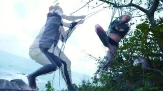 Tattoo piercing dreadhead girl gets tied up by LILY LU on public beach - kinbaku, shibari, bondage